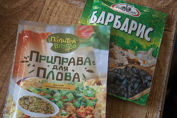 Из приправ я взяла – “Приправа для плова” от “Палитры вкуса” (омский производитель приправ, мне лично очень нравится. Все приправы без соли, без усилителей вкуса, без острых компонентов – это можно регулировать самостоятельно).
