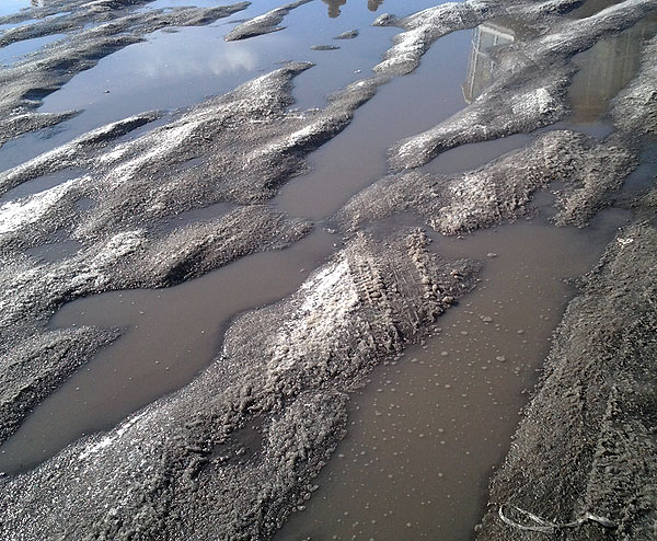 На дорогах в Омске ад. Асфальт стаял весь. По нашей улице Лермонтова машины едут исключительно по незаасфальтированным трамвайным путям. По Нефтяникам тоже ехать невозможно. По-моему, в этом году максимально плохие дороги за все время моего руления. А ходить пешком тоже нельзя -- лужи по колено )