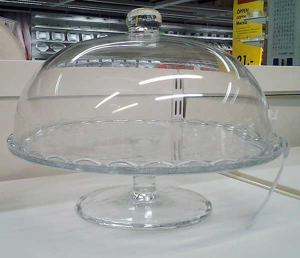 Такая штука для торта, говорят, еще для нарезанных овощей-фруктов хорошо подходит. Не заветриваются.