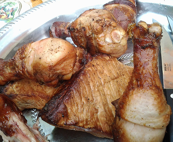А вот баранина – традиционное и самое “правильное” для шашлыка мясо – в наших краях очень сильно “на любителя” (мне лично жестковато (даже когда готовлю не я))). Вообще, люди, которые утверждают, что я просто правильно готовить баранину не умею – вперед сметают мой индюшачий шашлык, а не свой бараний)).