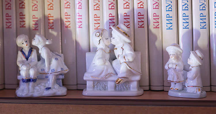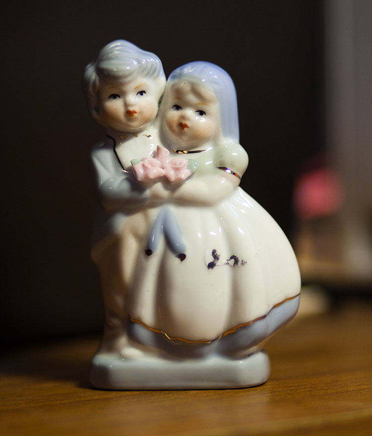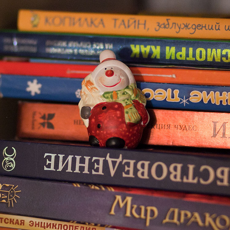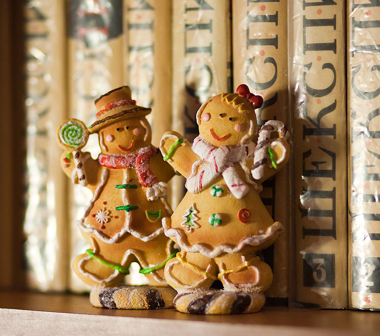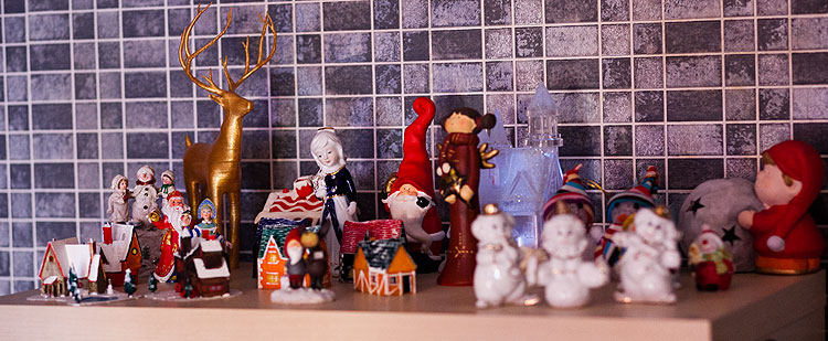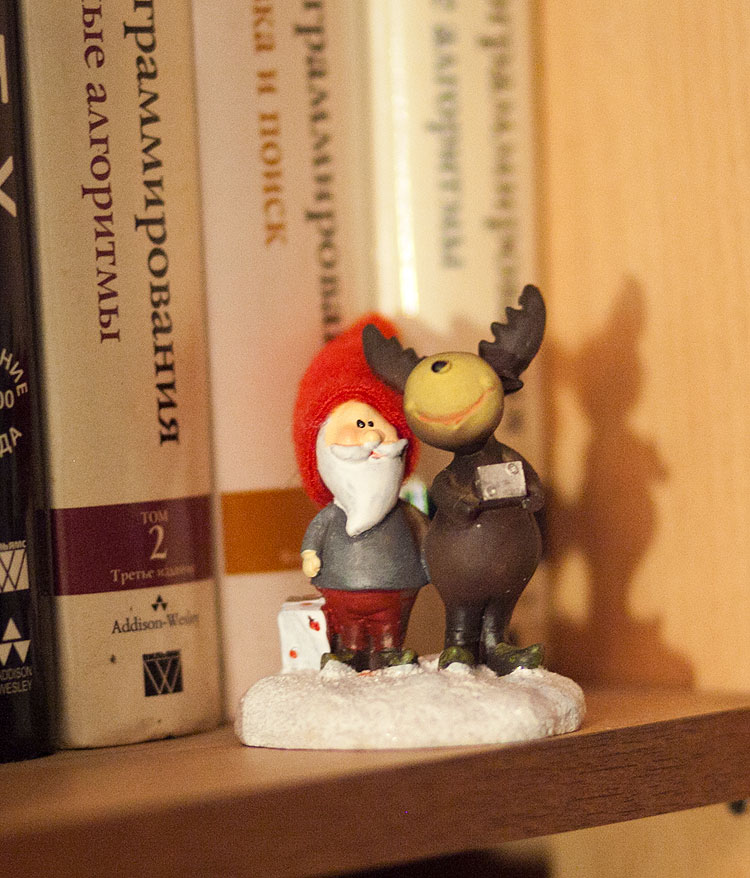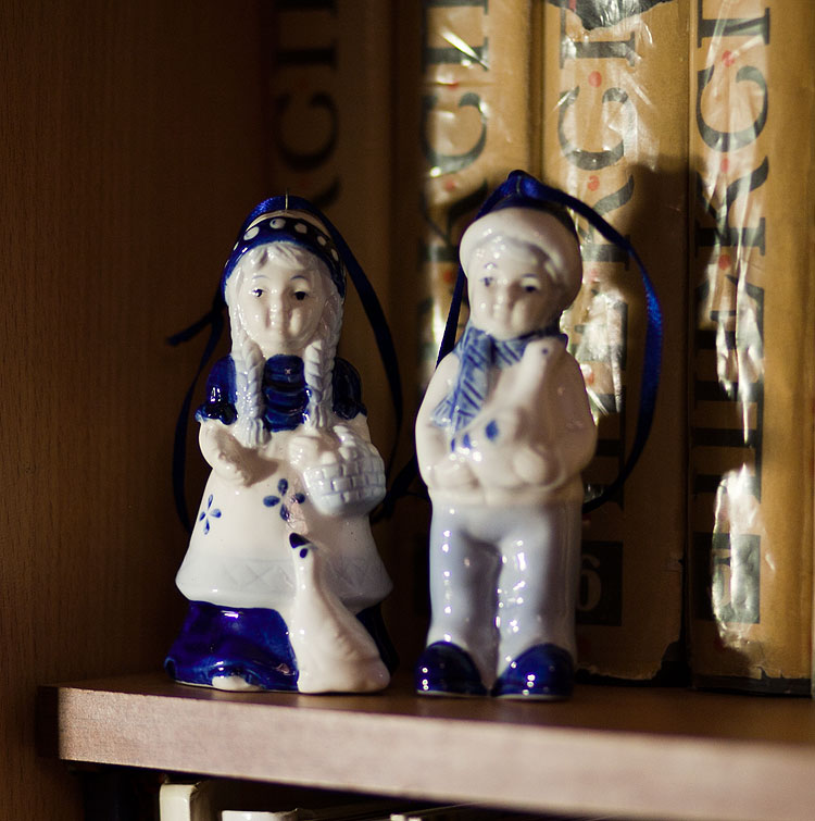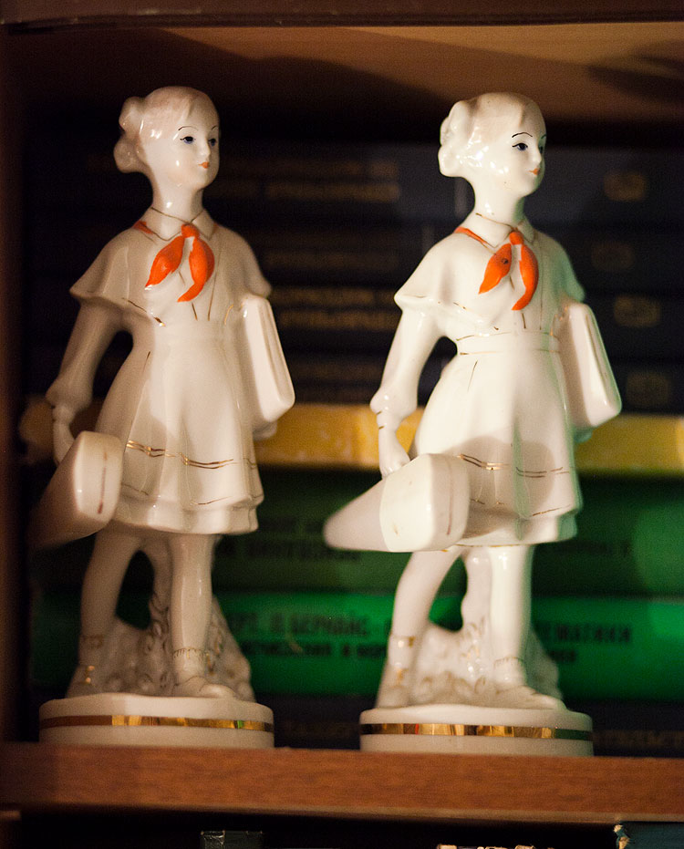 Вообще, в нашем доме есть какой-то круг статуэток, которые почему-то новогодними жителями не считаются и живут (на книжных полках, кстати) круглый год. Например, вот такие пионерки.