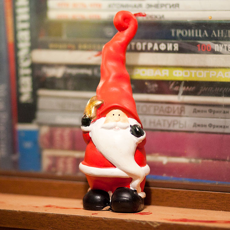 Почему-то мне страшно хочется подобрать к нему Снегурочку. Но я совершенно не могу найти в магазинах подходящую. Именно с этой целью я шарюсь по магазинам и фотографирую всех подряд Снегурочек, а потом дома сравниваю, подходят или нет. Нет.
