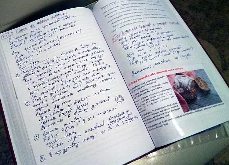 Во-вторых, добавились новые рецепты. Некоторые я вписываю в книгу от руки. Некоторые вклеиваю распечатанные.
