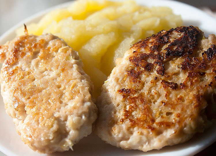 Можно их формировать в форме шариков и поливать сверху кетчупом-майонезом или другим соусом. Тоже вкусно. Если внутри котлеты яблоко, можно сделать соус из сметаны с покрошенным туда яблоком – и таким полить.