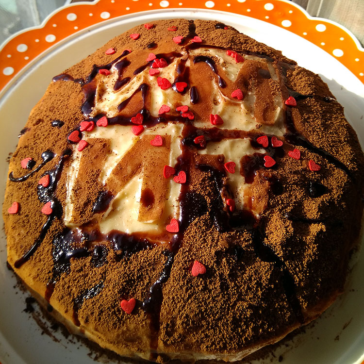 По традиции, каждый год на Аукцион, который проходит у нас на матфаке, я пеку торт памяти папы. В этом году он выглядел так.