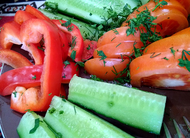 Как вы видите, к такой порции шашлыка отдельно салат в целом и не нужен ) Но можно заказать овощную нарезку.