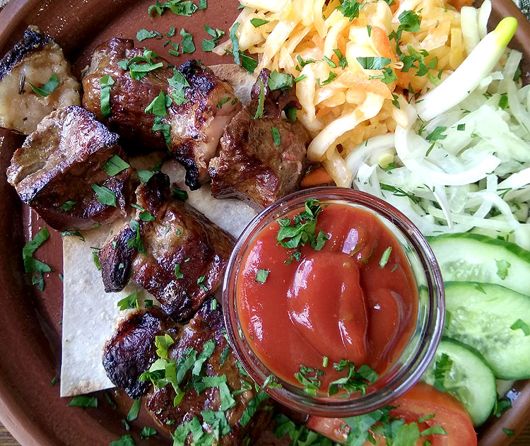 Заведение не претендует на звание ресторана высшего класса, все очень демократично. Кормят в основном шашлыком.