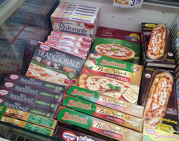 А вот выбор пицц в итальянском супермаркете. Почти такой же, как в нашем Ашане! Мы готовые пиццы в Италии не брали, потому что нам греть было негде.
