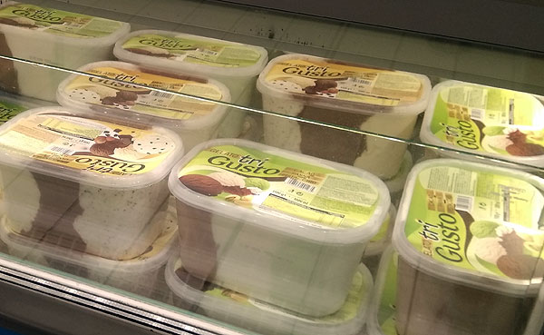 Еще наблюдение за мороженым. Мы с детьми любим разное мороженое. Антон предпочитает шоколадное. Денис – клубничное (или любое ягодное). Я люблю разное, но если какое-то одно, то скорее простой белое (у нас его еще называют “ванильное”). У Инмарко даже есть такое мороженое литровое “Трио” (треть белое, треть шоколадное, треть клубничное). Мы его часто берем в России. И вообще, в России это как раз три самых распространенных базовых мороженых.