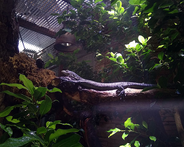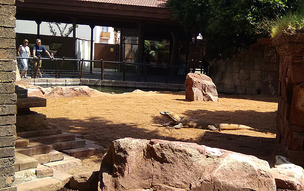 Почти все вольеры открыты для зрителей с 3-4 сторон. Вот вы видите, мы фотографируем варана, а с другой стороны люди тоже на него смотрят.