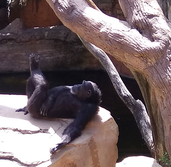 Там черный горилл, который пузо чешет – это тоже папа. А мама с малышом отдельно. ))) Все как у людей, точно.