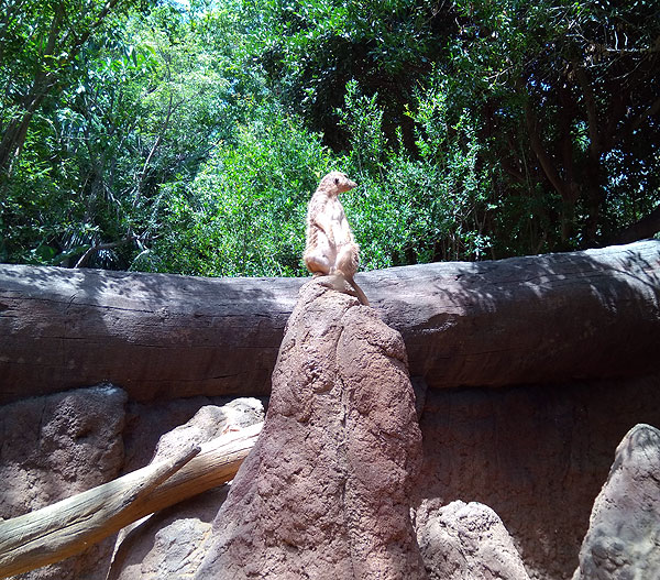 Т.е. мы все уже прошли сурикатов, смотрим, Антона нет. А оказалось, он пошел искать вокруг клетки другие виды на них. Вот чем-то зацепили они моего детеныша. Потом весь отпуск он их стойку повторял )