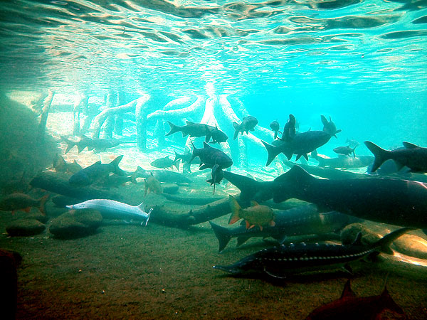 У некоторых крокодилов в водоеме много рыбы. А еще в некоторые водоемы можно заглянуть не сврху, а сбоку.
