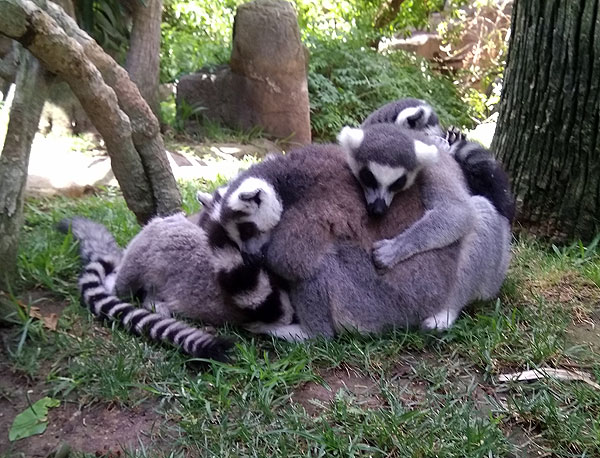 Когда мы были, у одной семьи лемуров как раз недавно появились детишки. Вот на этой фотке мама и три (кажется) детеныша.