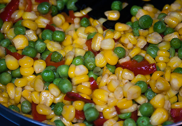 Кукуруза-кукуруза. Там на 500 грамм кукурузы 50 грамм горошка и 10 грамм острого перца. Я писала когда про кукурузу, так честно и сказала, что с этими добавками смесь по красоте заиграет и чуть-чуть даже по вкусу!