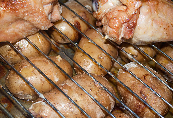 На гарнир к ним полагалась запеченная картошка. Плечи индейки на решетке готовились, а картошка под ними.