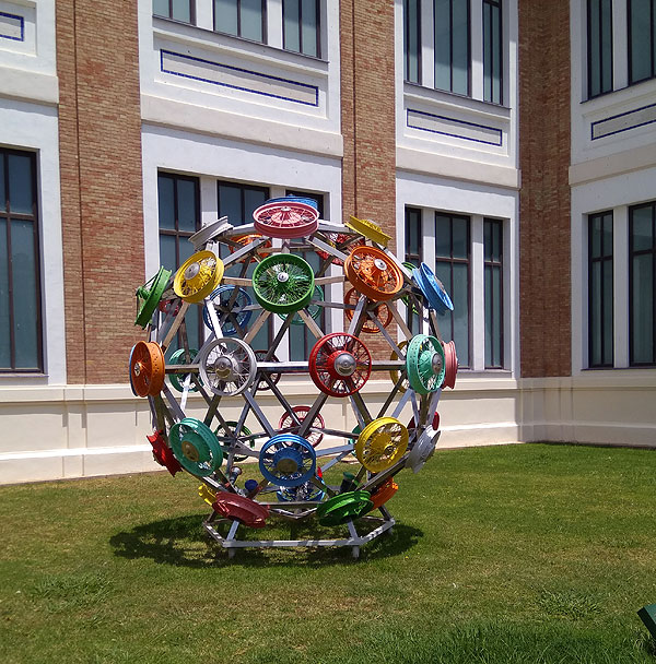 А тут кругом инсталляции или еще чего на тему. И это не совсем про музей, про Малагу в целом тоже так. Если надо построить новое здание – будем строить какой-нибудь пост-модерн. Вот эта инсталляция то ли призывает задуматься о влиянии автомобилю на экологию, то ли это сарказм – я так и не поняла.