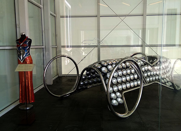 А еще есть в музее инсталляции про моду (он же автомобилей и моды!) в чистом стиле. Тоже очень эпатажные. Например, эта – “Miss Wonderful” из кристаллов и полудрагоценных металлов.