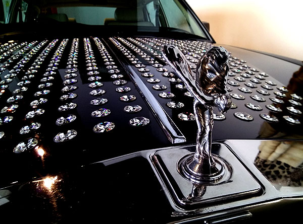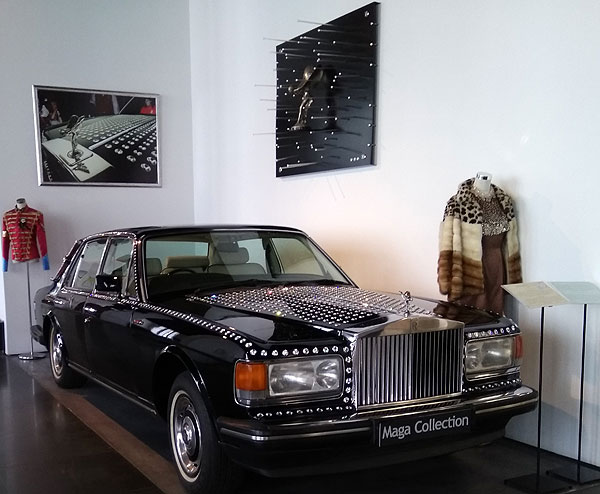 Так и в этом музее. Здесь не только автомобили. Есть еще автомобили, дизайн которых переработан известными дизайнерами. Тут есть Феррари от Диор, Мерседес от Шанель, Порш от Дольче и Габанна. Вот, например, Роллс-Ройс, украшенный кристаллами Сваровски.