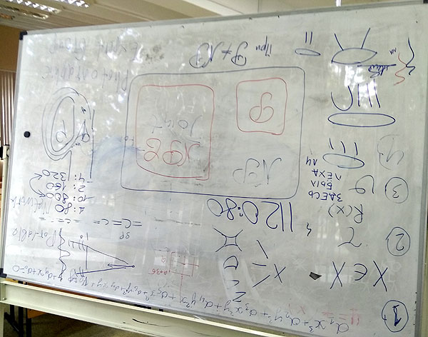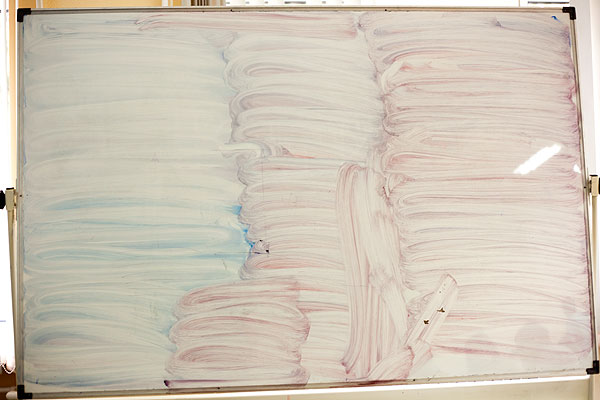 Я не обратила на это внимание, но тем временем доске становилось все хуже. И вот, на третьей лекции мне эта доска понадобилась. Оказалось, что стереть что-либо с доски невозможно. Т.е. некоторые штрихи самого неяркого маркера стираются. Все остальное – намертво.