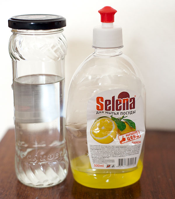 Короче, в следующий раз я принесла с собой баночку спирта. (Возле средства для мытья посуды на фото – спирт). Спирт оттирает доску! Ну, как оттирает. Мы потратили полбанки. Получили черно-синие по локоть руки. И вот такой эффект.