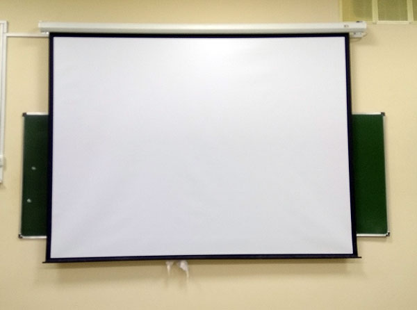 Короче говоря, проектор – это круто. Проектор – это модно. Проектор – это современно. Поэтому экран от проектора располагается поверх нормальной доски.