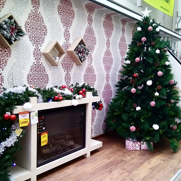 Некоторые магазины наряжают к новому году почти целую комнату или хотя бы уголок.