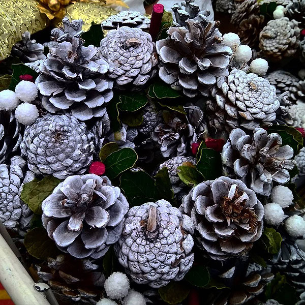 Если не можете себе позволить елку – бывают разные куски елки. Венок, ветки, шишки и т.д.