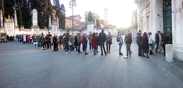 Такая же бестолковая (на мой взгляд) очередь -- к Устам Истины. Очередь не такая длинная, как в Ватикан, но на полчаса, не меньше.