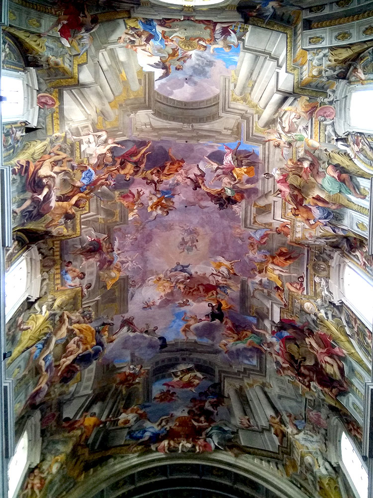 Например, вот потолок из базилики Сант-Игнацио. Знаете, что тут такого? Потолок абсолютно плоский. А выглядит – вот таким вот куполообразным, кажется, на фото удалось передать.