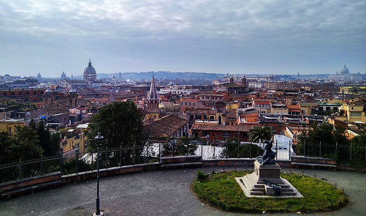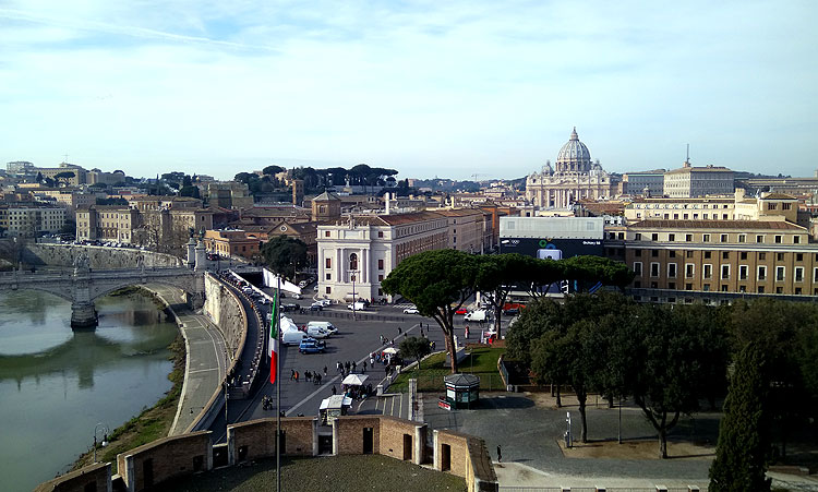 И там есть обзорная площадка – с нее вид примерно как с обзорки в Святом Петре. Только лучше, потому что видно Собор Святого Петра. И мое любимое место в Риме – Тибр.