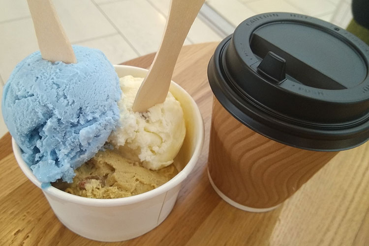 Иногда забавные вещи можно еще найти в супермаркетах. Например, вот такой штукой недавно хвасталась в инстаграме. (Я не скажу, что это что-то нереально вкусное. Это что-то просто вкусное. Зато необычное; поэтому покупала уже несколько раз: я люблю разнообразие в еде в целом, и в мороженом в частности.)