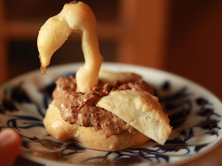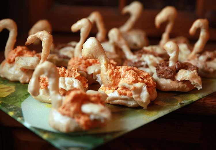 По задумке это рецепт назывался “Лебеди”. Но поскольку украшать еду я не умею от слова “совсем никак”, то получилось то, что получилось. Некоторые, наверное, водоплавающие птицы.