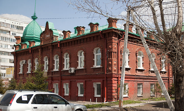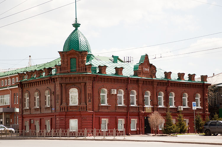 Строили такие здания с 1890-х до 1910-х (до революции в основном, конечно). Вообще, в Омске в то время был экономический подъем. Строили много, разного и хорошего. К этим 10% жизни города (30 лет из 300) относятся 90% всех памятников архитектуры Омска. Но я покажу здания вполне определенного стиля.