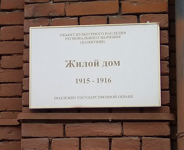 Табличка, которая ничего нового не сообщает, только то, что дом построен в 1915-16 годах.