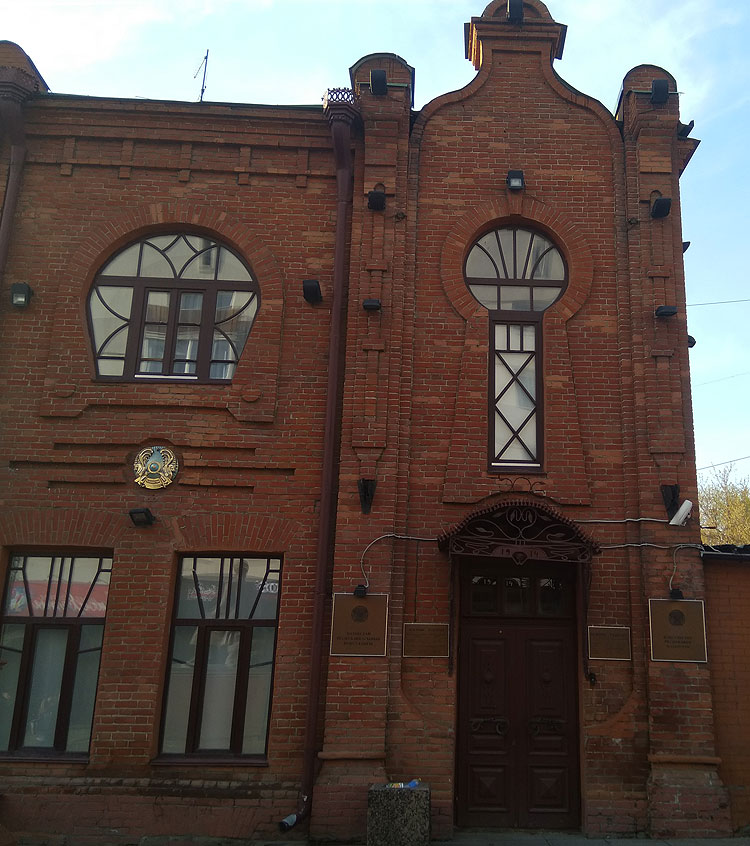 Особняк ныне занимает консульство республики Казахстан. И здание очень очень хорошо отреставрировано/отремонтировано. Например, не упрощены оконные рамы. Оконные рамы очень любят упрощать, когда ремонтируют такие особняки. Например, со стоматологической клиникой выше случилось такое. Раньше рамы были деревянные. Понятно, что они уже вышли из строя, но рамы были непростые. А заменили на самый простой пластик. Скажите спасибо, что форму окон не поменяли.
