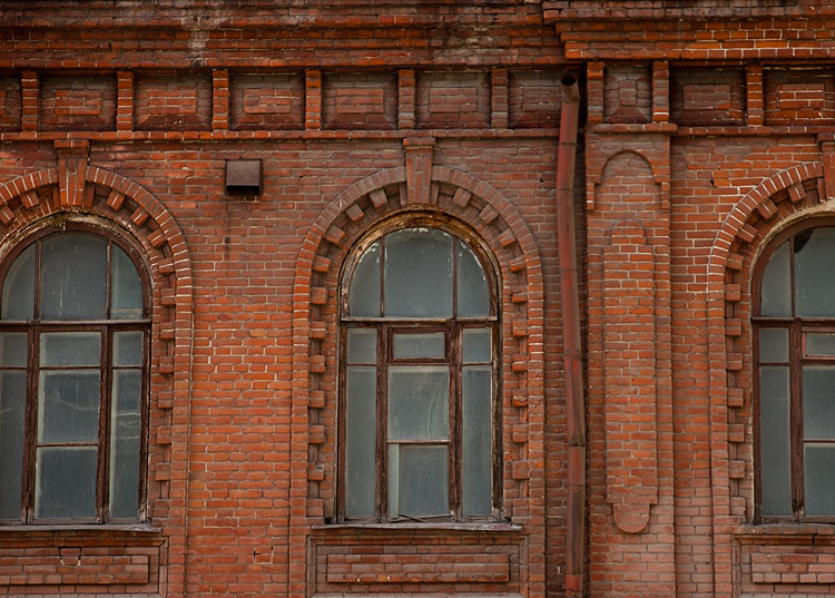 Вот эти вот здания красного кирпича часто украшают белением вокруг окон. Мне кажется, вот так оформленным окнам даже пойдет, если в них вставить белые рамы, а не “под дерево”. На особняке Куликова мне белые рамы нравятся. Здесь, мне кажется, тоже смотрелось бы хорошо, если все рамы одинаковые и белые.