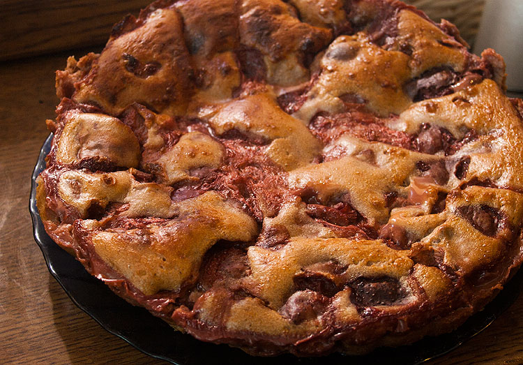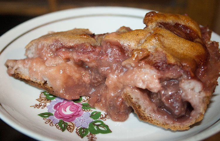 Вот это – клубничный пирог. Он менее фотогеничный. Более темный он из-за того, что в тесте есть клубничный сок, а не из-за степени зажаристости.