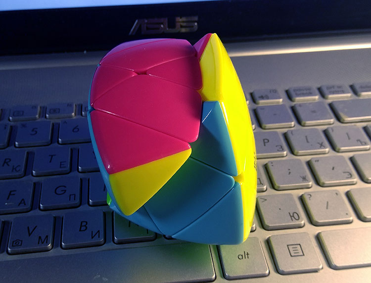 На вид она выглядит как пирамидка, но у нее совершенно другой принцип вращения. У молдавской пирамидки вращаются грани: