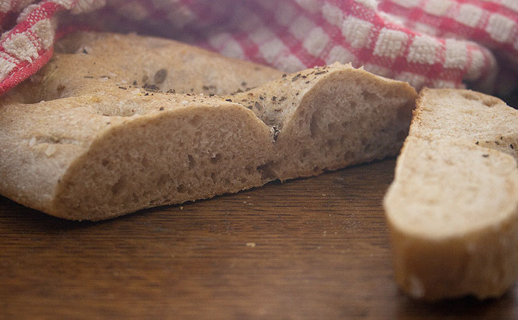 Фокаччей кормила своих домашних, они сказали, что черный хлеб им надоел, и можно с годик не печь.