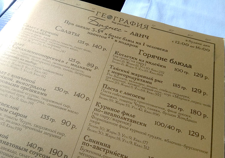 Бизнес-ланч ресторана "География"