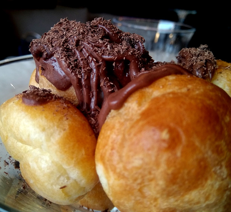 Короче, лично я рекомендую ресторан “География”. И конкретно бизнес-ланчи в “Географии” тоже рекомендую. Средний чек по основному меню у нас на двоих выходит примерно 1700-2000 без алкоголя. По бизнес-ланчу 700-1000 рублей. Для бизнес-ланча это не дешево, но и качество такое у бизнес-ланча я не встречала. На фото – десерт “бенье”. Это маленькие, размером с 2 рубля, профитроли с кремом.