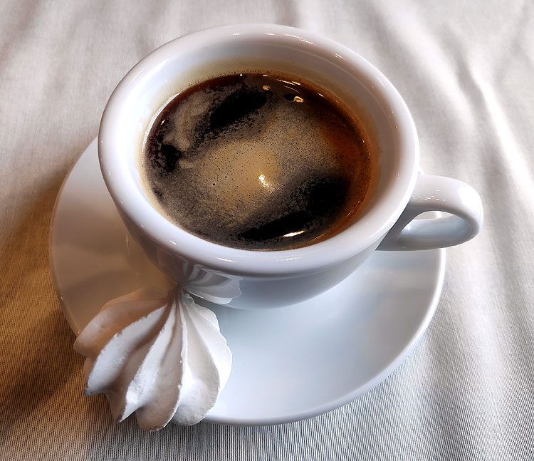 Три недели назад на бизнес-ланче было одно меню. В этот раз уже другое. Короче, меню бизнес-ланча все время обновляется. На фото выше – американо. К американо всегда небольшой комплиментик от шефа.