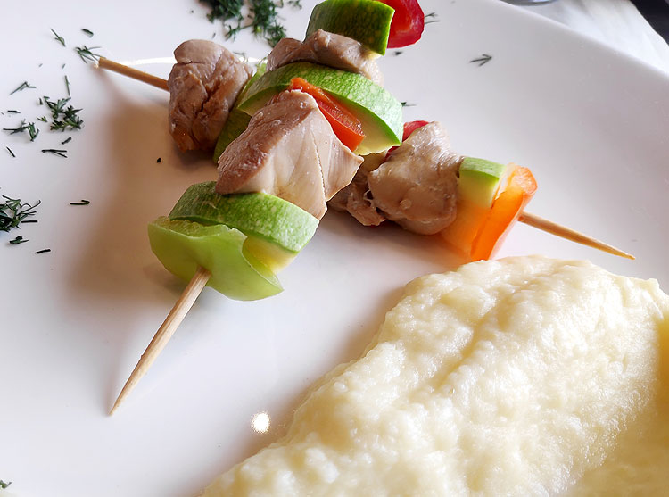 На фото выше – шашлычки-терияки на пару с картофельным пюре.