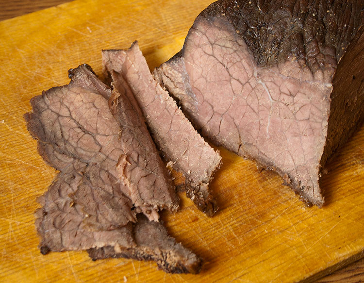 А это блюдо из разряда "неудачи превращаем в шедевры". Испекла я мясо куском. Испекла как обычно, но мясо выбрала не проверенного производителя, а того, на которого была скидка. И это я зря. Хотя выглядело оно сырым очень хорошо, в готовом виде оказалось очень плохо жующееся.