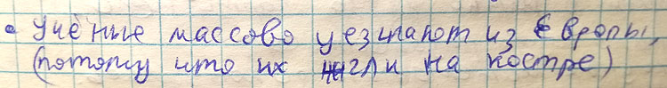 Перевод: учёные массово уезжают из Европы (потому что их жгли на костре)