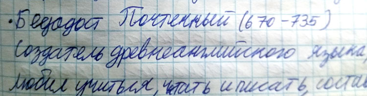 Если что, поясню. Ученого-монаха звали Беда Достопочтенный (он же Беда Досточтимый или Беда Почтенный). Он действительно один из создателей древнеанглийского языка. И что характерно учиться любил.