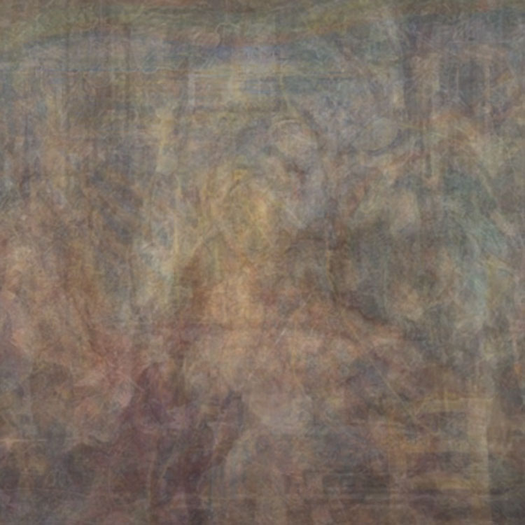 Как я это построила: я взяла произвольный “топ самых известных картин мира” (25 картин) и усреднила то, что на них изображено, предварительно обрезала до квадрата – чтобы не торчали хвосты. Тут у меня и “Философия” Рафаэля, и “Сотворение мира” Микеланджело, и “Поцелуй” Климта, и “Страшный суд” Босха. Все усреднила. Получилось вот такое симпатичное нечто.