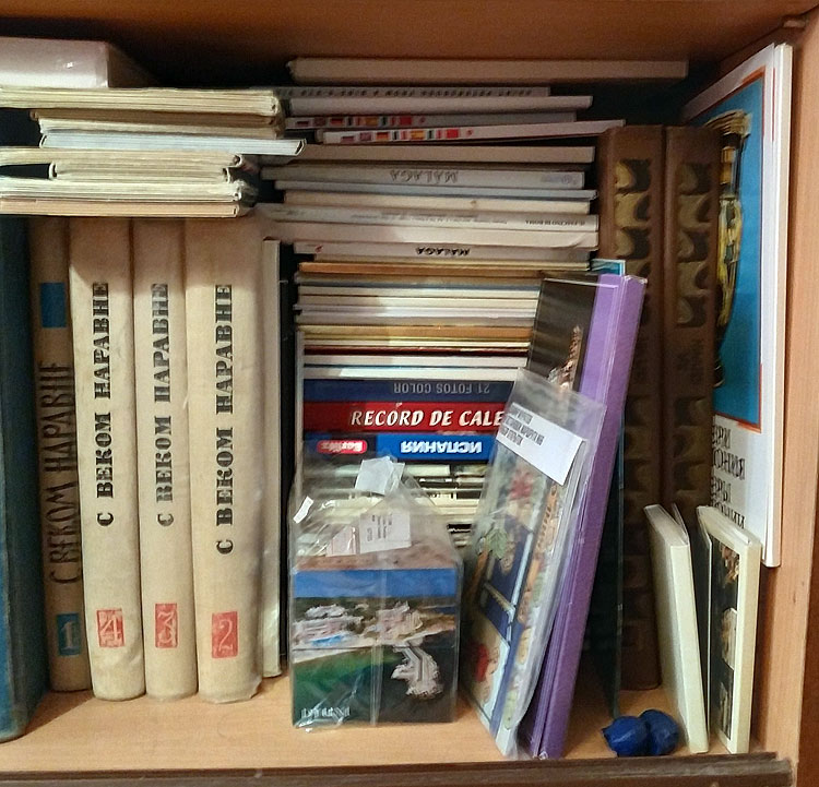 Занимает она небольшой кусочек на книжных полках, и обычно закрыта фотографией (фотография вставлена между стекол стеллажа – специально, чтобы закрывать эту “некрасивость” на полках).