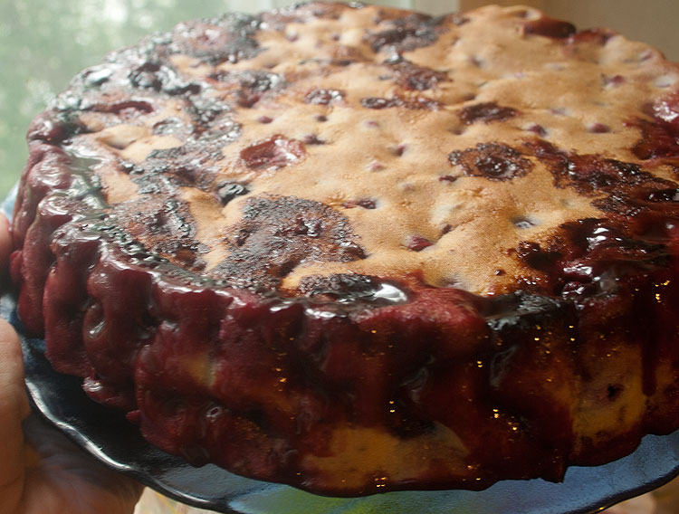 Свекровь постоянно угощает ягодами с дачи. И вот, например, это как шарлотка, но с черной смородиной. Это очень вкусно.